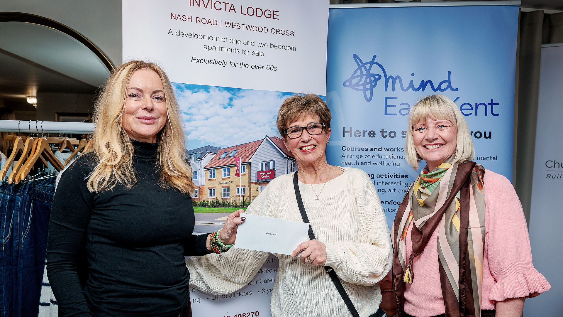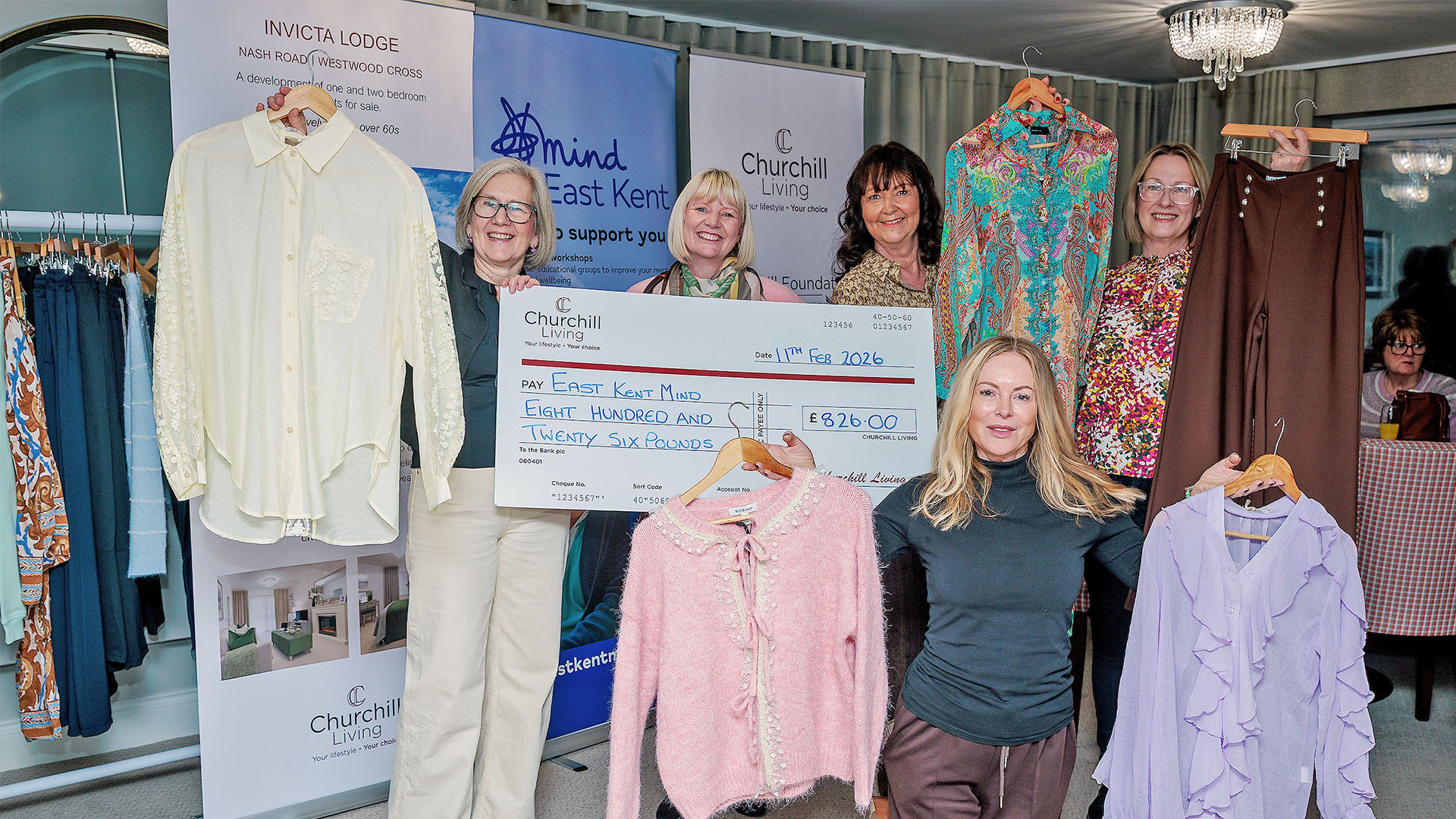 Churchill Living welcomed local residents to Invicta Lodge at Westwood Cross for a successful charity fashion evening in partnership with Love London Clothing, raising a total of £826 for East Kent Mind. The total includes match funding from the Churchill Foundation, doubling the impact of funds raised on the night.